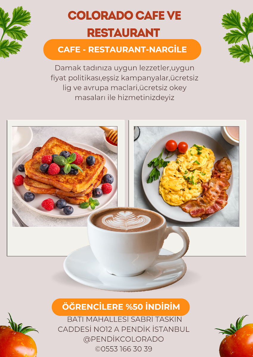 Welcome to Colorado Cafe & Restaurant, an inviting culinary gem nestled in the heart of Pendik, Istanbul. Located on Sabri Taşkın Cd. No:12/A, this cafe radiates a warm atmosphere that makes it the perfect spot for gathering with family and friends.